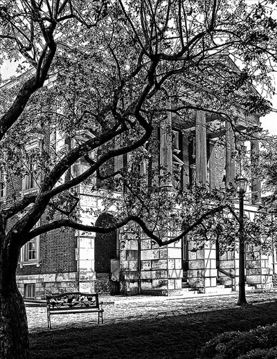 Osgoode Hall with Bench - Toronto, Ontario - limited edition black and white photograph by Alex Krajewski